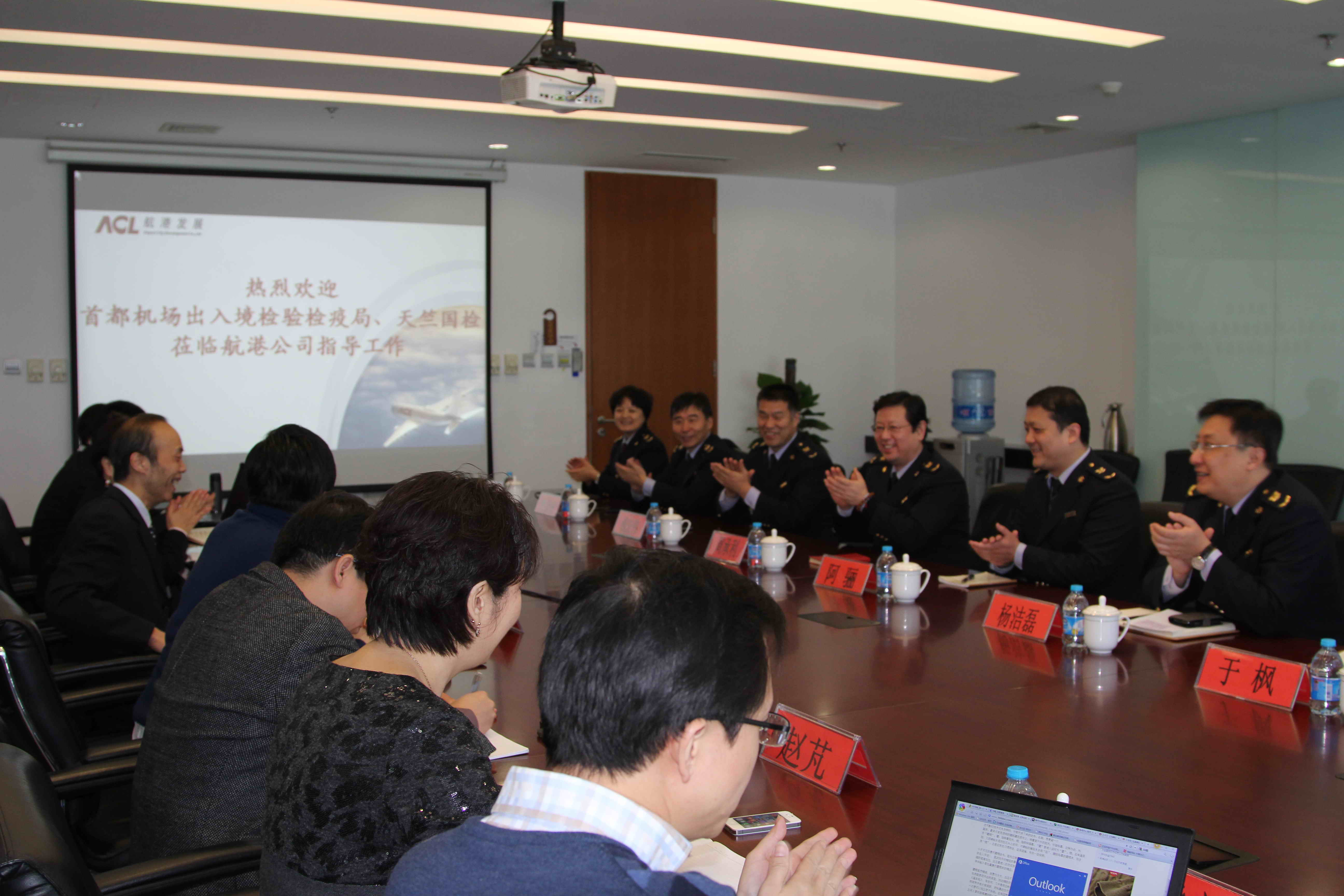 013年12月26日,航港发展公司董事长薛宪总、董事总经理蒋莉及公司全体中高层管理人员向首都机场国检局及北京国检局天竺办进行了园区运营及未来规划发展建议的汇报和沟通。会上,薛总就国检局一直以来对航港提供工作方面的支持表示郑重地感谢,蒋总希望通过加强对航空货运平台建设,加强与国检局等园区政府主管部门的交流与沟通,希望共同促进并带动区域发展。首都机场国检局周局长对航港在货运北区建设中的贡献表示肯定,对货运北区的运行模式表示满意,高度认同首都机场提出的“同在国门下,同是一家人”的文化理念,希望在今后的工作中与航港相互支持,携手共促园区发展。