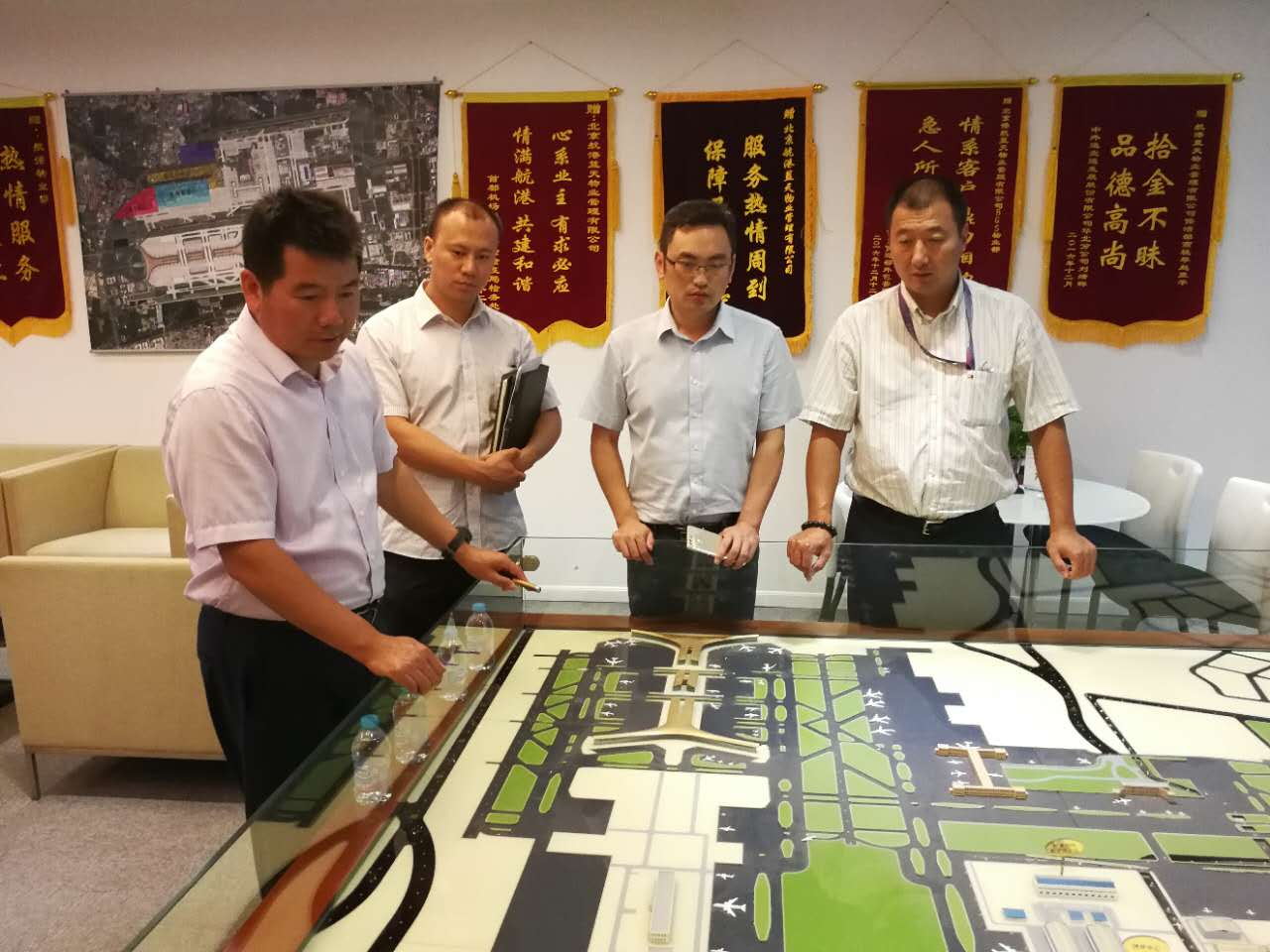On June 22, 2017, Cui Aijun, General Manager of the Flight Zone Management Department of Capital Airport Co., Ltd. and his party visited ACL and communicated with Liu Xuedong, Director of Engineering Department. Both sides had frank and friendly exchanges on the construction of site plots in the management area of ACL and the Flight Zone Management Department of Capital Airport.